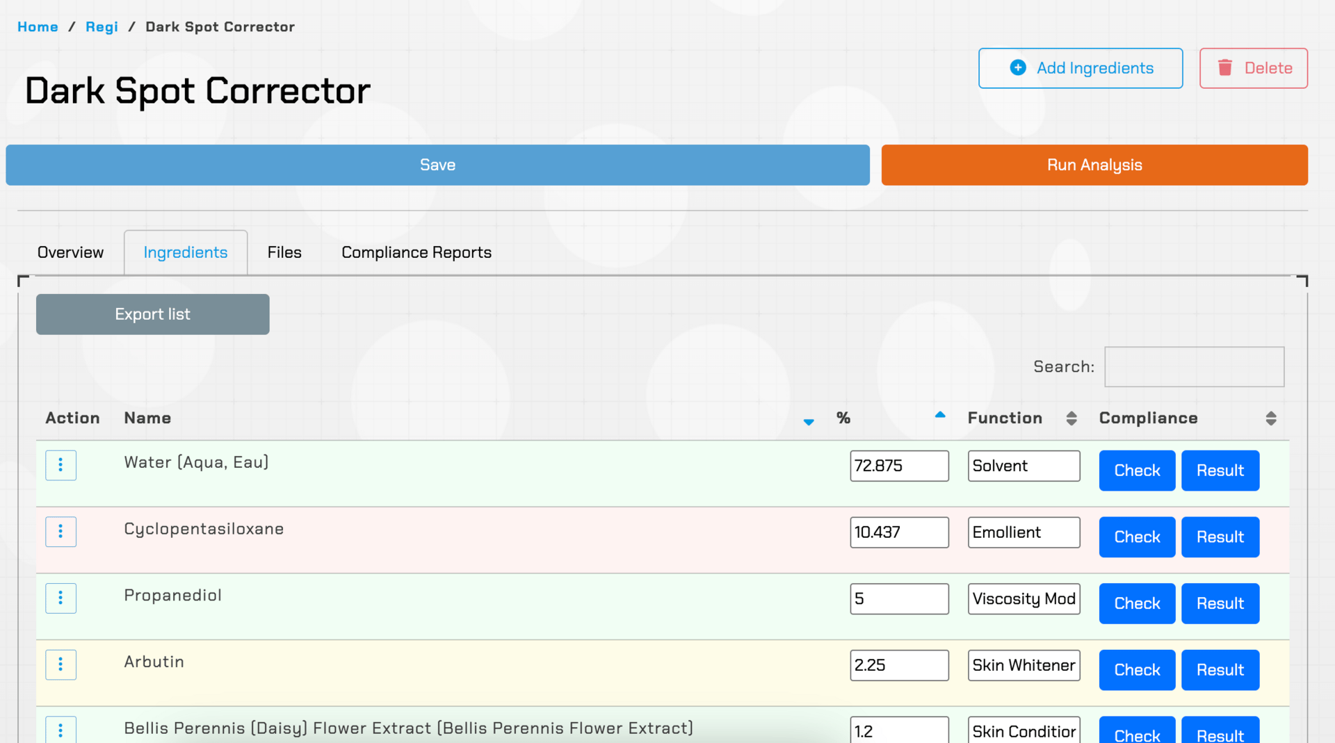 Regi also allows companies to radically change their approach to compliance. From the very first draft of a formula, they can run regular compliance screenings so that by the time the formula is finalized, there are no regulatory surprises. This simply was not possible to do 2 years ago.